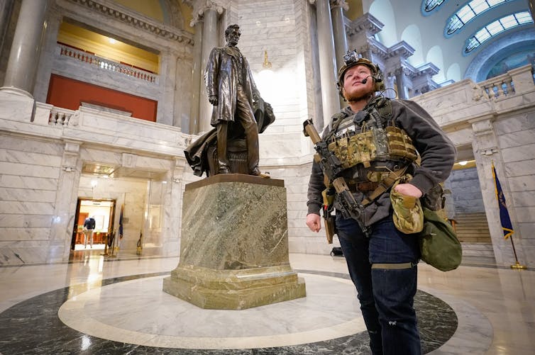 A gun rights advocate walks through the rotunda of the Kentucky Capitol. Some lawyers argue that the 1689 English Bill of Rights created the legal basis for public carry of weapons in the U.S. Bryan Woolston/Getty Images