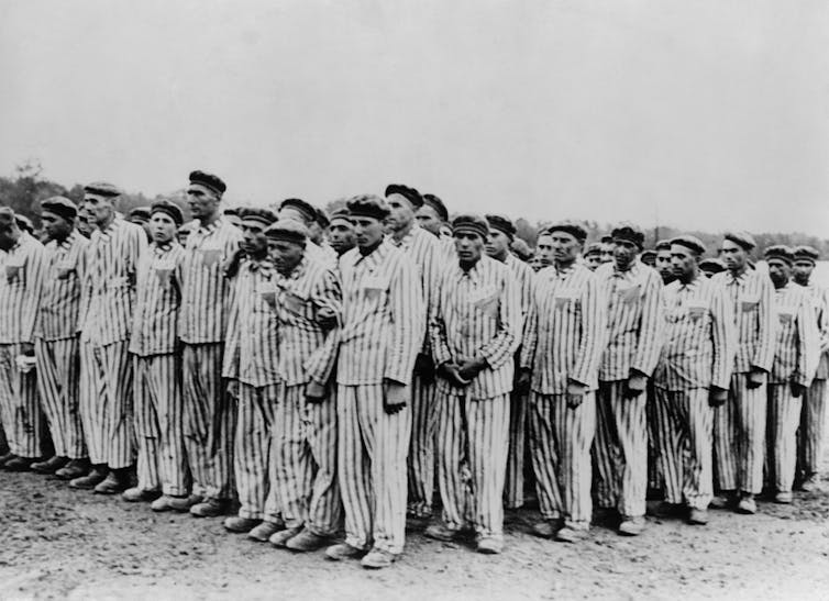Roll call at the Buchenwald concentration camp. Everett Historical/Shutterstock.com