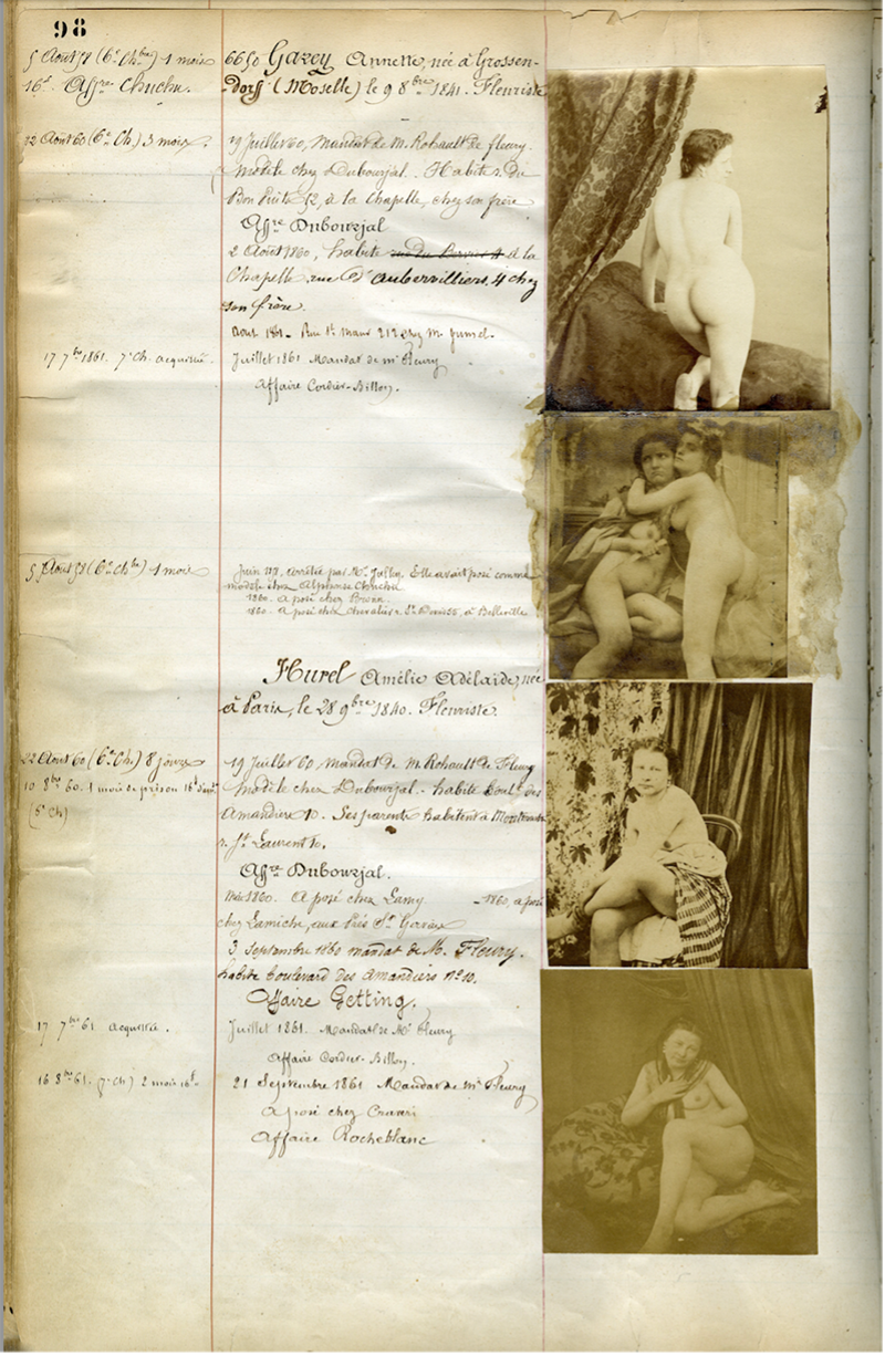A series of albums created by an unnamed amateur photographer in Bordeaux between 1889 and 1910, now housed in the Enfer of the Bibliothèque nationale de France, offers a glimpse of the lesbian erotica that circulated at this time. These photographs depict groups of women in what is very likely a brothel and are far more explicit than the commercial images from the 1850s and 1860s. Women masturbate. They perform oral sex on each other; they play with dildos; they give and receive pleasure.
