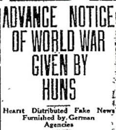 As World War I tore through the European continent, fake news flooded America’s media ecosystem. Newspapers ran sensationalist fakes targeting anti-war critics and fanning anti-German sentiment. Some of it was even furnished by German newswire services, reprinted unthinkingly for its sensational circulation value.