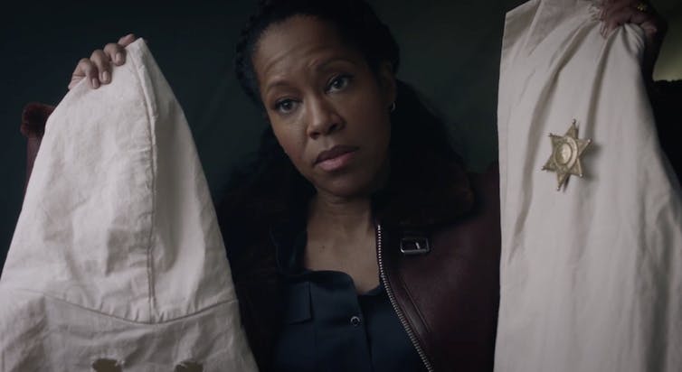 In ‘Watchmen,’ Angela Abar (Regina King) finds KKK garb in the closet of Judd Crawford (Don Johnson), her late friend who was Tulsa’s police chief. (HBO)
