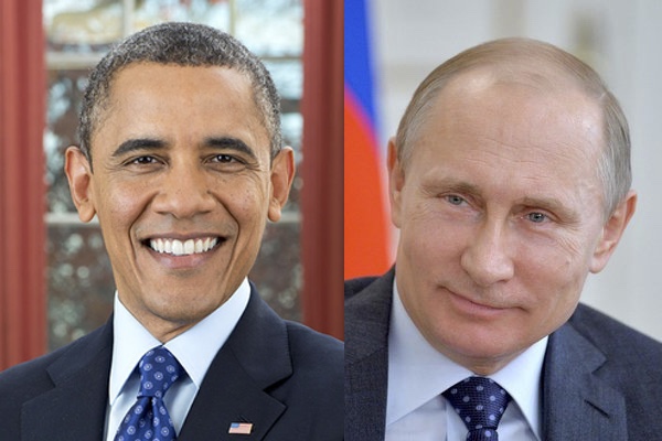 "President Barack Obama" by Official White House Photo by Pete Souza - P120612PS-0463 (direct link). Licensed under Public Domain via Commons."Putin with flag of Russia" by Kremlin.ru. Licensed under CC BY 4.0 via Commons.