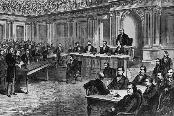 The House overwhelmingly approved those impeachment articles. After a four-week trial in spring 1868, the Senate acquitted Johnson by a single vote.
