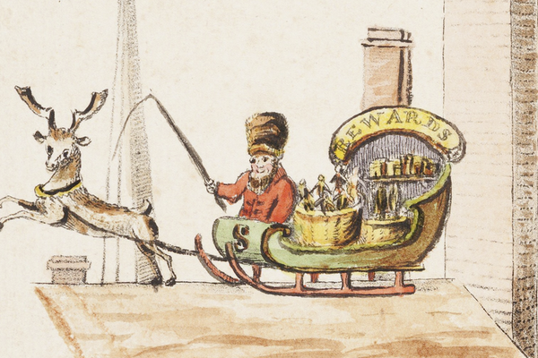 Moreover, the similarities between The Children’s Friend and “A Visit from St. Nicholas,” such as the gift-giver’s arrival on Christmas Eve in a sleigh pulled by flying reindeer, are impossible to explain unless one assumes that Moore copied Gilley. The most common theory is that Moore bought a copy for one of his two older daughters in 1821 but decided its emphasis on corporal punishment was inappropriate for his young family. Accordingly, Moore rewrote Gilley’s poem during 1822 to make it the warm-hearted, family-friendly poem we have grown to love.